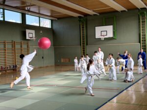 Auf dem Programm standen natürlich technische Judo-Einheiten, bei denen an wichtigen Bewegungsabläufen und Techniken gearbeitet wurde. Außerdem gab es Informationen rund um die kommende Gürtelprüfung. Neben dem Judotraining sorgten auch Ballspiele, Koordinationsübungen und verschiedene Geschicklichkeitsaufgaben für viel Abwechslung und jede Menge Spaß.