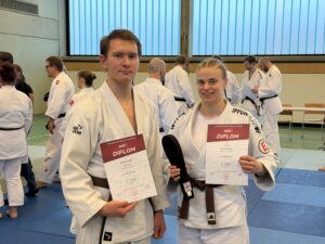 Beide überzeugten die Prüfungskommission mit sehr guten Leistungen in Stand- und Bodentechniken sowie durch saubere Ausführung und hohe Konzentration. Die intensive Vorbereitung zahlte sich aus und wurde mit der Übergabe der Urkunden offiziell bestätigt.