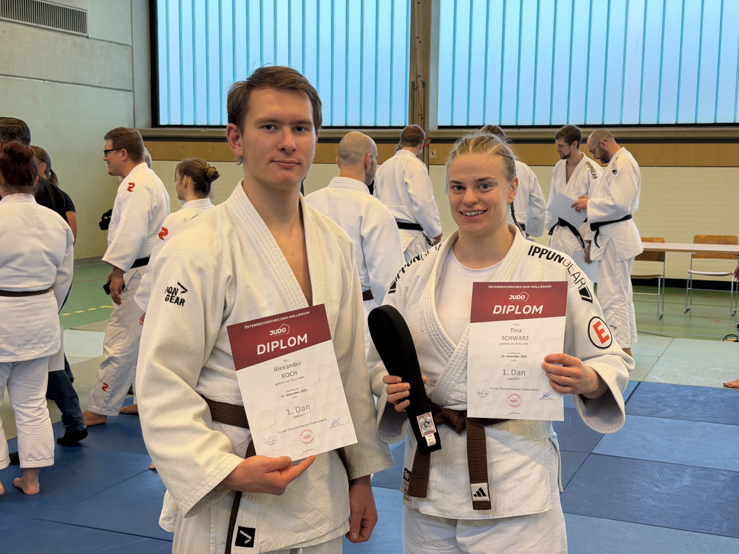 Bei der kürzlich durchgeführten Dan-Prüfung des Österreichischen Judoverbandes stellten sich zahlreiche Judoka dieser anspruchsvollen Herausforderung. Mit großem Erfolg: Alexander Koch und Tina Schwarz bestanden die Prüfung zum 1. Dan und dürfen nun den schwarzen Gürtel tragen.